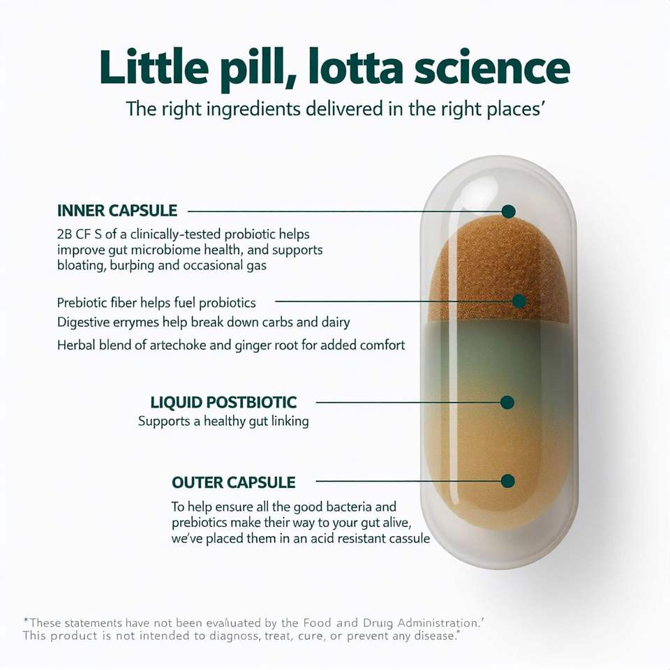 Échantillon gratuit de probiotiques contre les ballonnements et les gaz, soutien proactif 5 en 1, 30 comprimés | Herbes, enzymes digestives, pré- et postbiotiques
