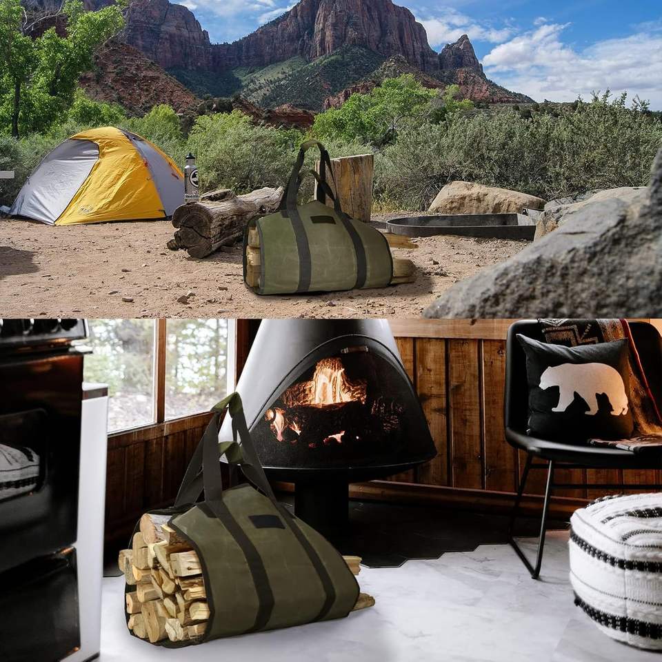 Sac de transport pour bûches de bois Oxford, grand et robuste, pour le camping et le bois de chauffage intérieur