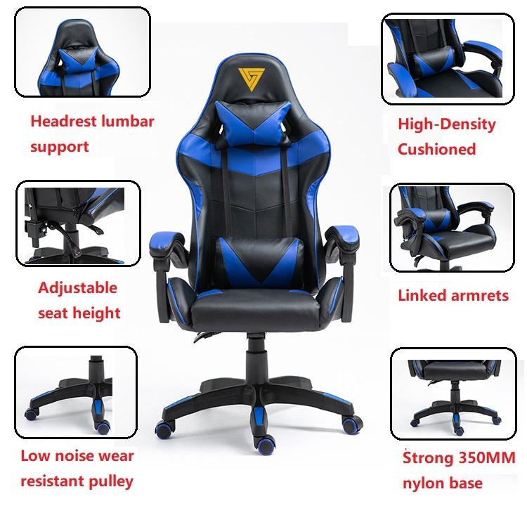 Nom du produit:Chaise de jeu bleue en cuir PU avec repose-pieds