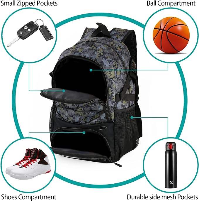 Sac de sport à compartiments multiples, grand sac de basketball avec compartiment à chaussures, sac à dos de basketball avec ballon