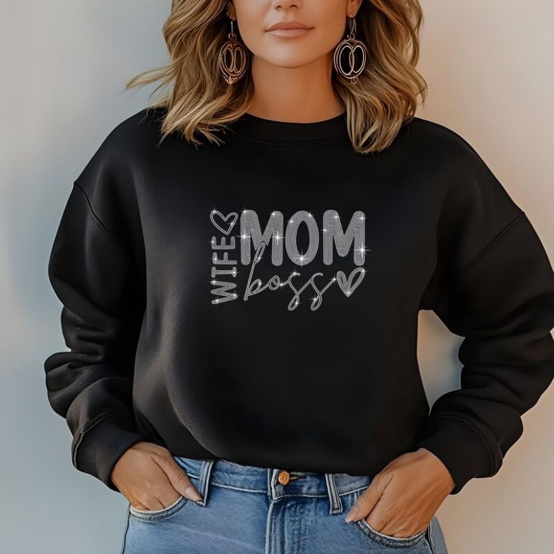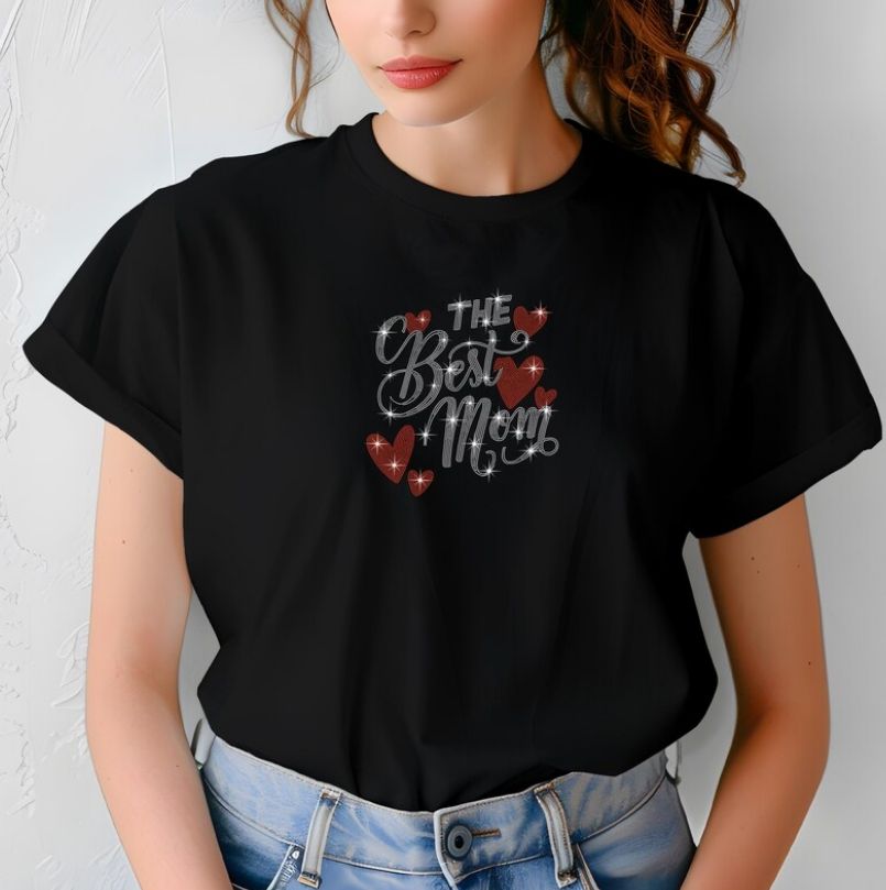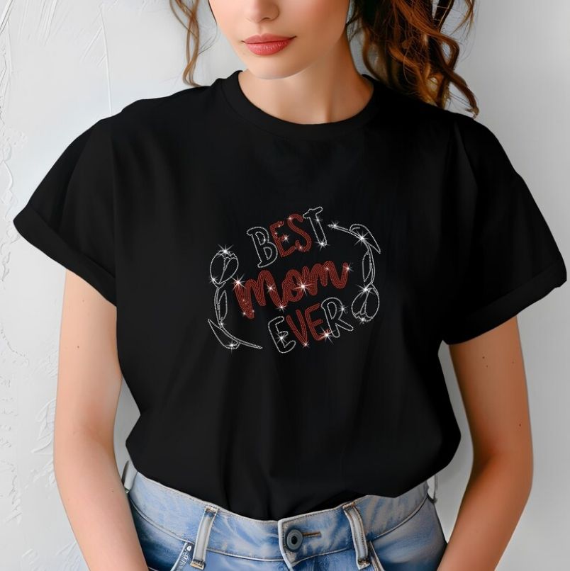 Échantillon gratuit T-shirt en coton personnalisé pour femmes avec un merveilleux motif Cheer Mom Ready avec strass et paillettes