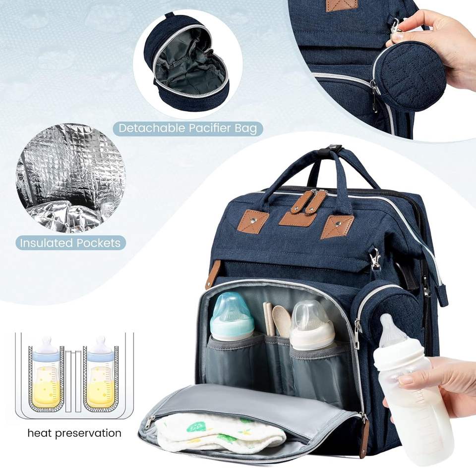 Échantillon gratuit Sac à langer personnalisé tendance pour extérieur en cuir artificiel vegan pour maman Sac à langer pour bébé de voyage Sac à dos pour mère