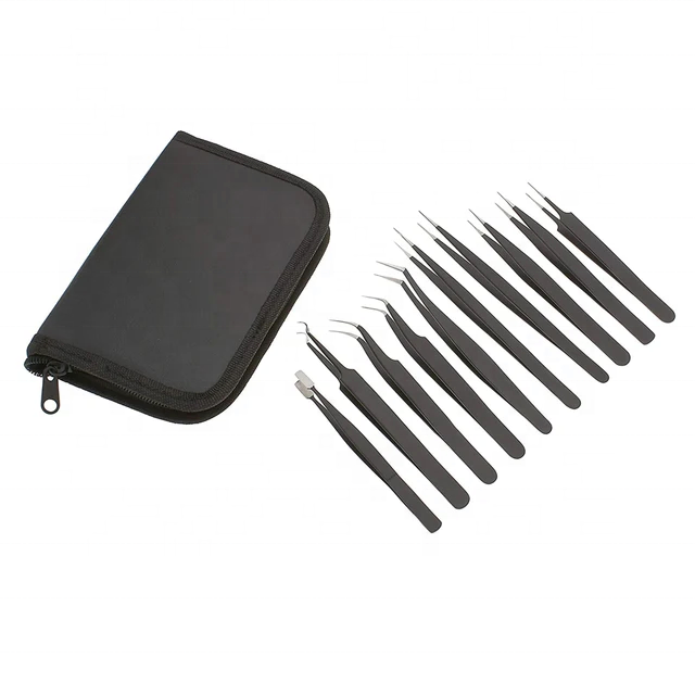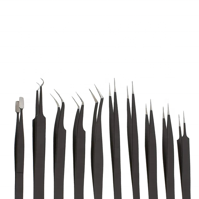 Échantillon gratuit de pince à épiler noire avec logo personnalisé Diamond Grip Pince à épiler d'extension de cils en acier inoxydable Pince à épiler à pointe pointue