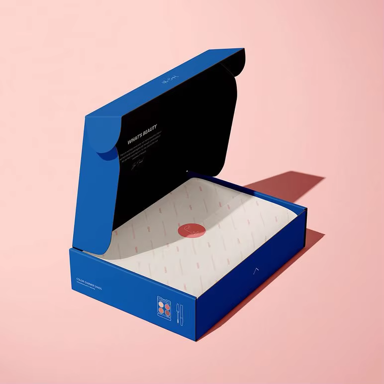 Échantillon gratuit Logo personnalisé Premium Bule Couleur Spécialité Papier Cosmétique Emballage Boîte d'Expédition Boîte Mystérieuse Boîte de Papier