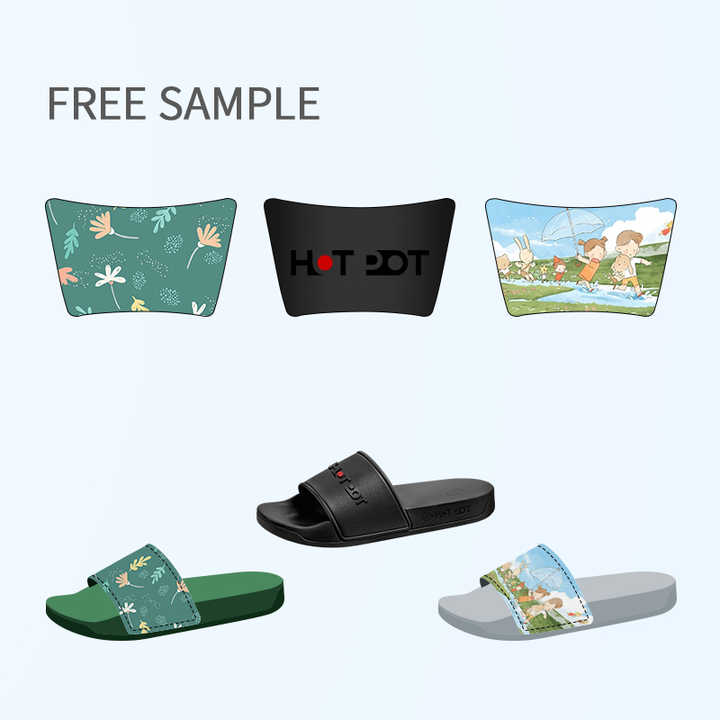Échantillon gratuit de chaussures sandales personnalisées pour hommes, sandales pantoufles en PVC entièrement imprimées pour hommes, sac à poussière, sandale avec logo personnalisé
