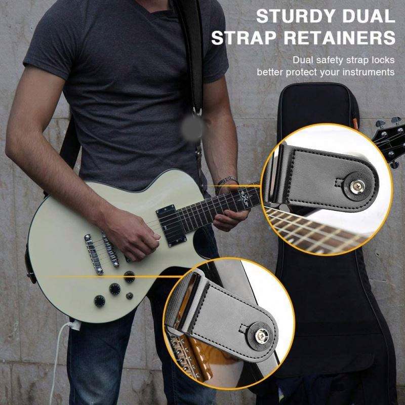 Échantillon gratuit Sangle de guitare personnalisée en néoprène avec cuir synthétique et éponge Décompression Sangle d'épaule confortable Ceinture de guitare