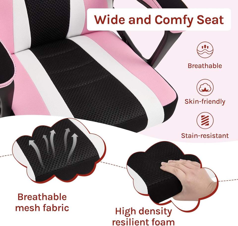 Échantillon Gratuit - Chaise de Bureau Gamer Rose Personnalisée Populaire avec Oreilles de Chat Mignonnes, Inclinaison et Rotation, Fonction Massage, Idéale pour les Jeux Vidéo