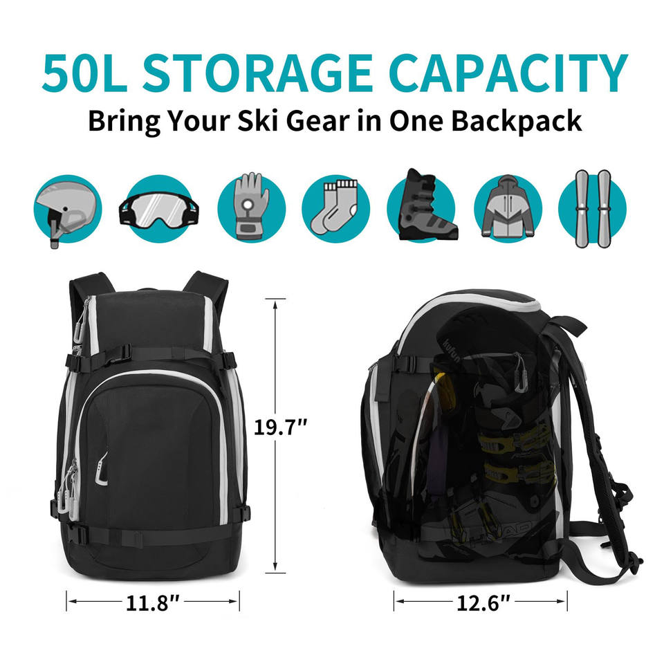 Échantillon gratuit sac de ski personnalisé léger durable en cuir véritable détachable pour casques de skis bottes de ski sac à dos pour bottes de ski plus