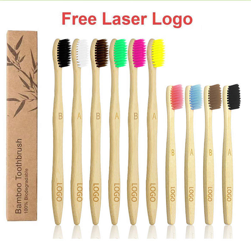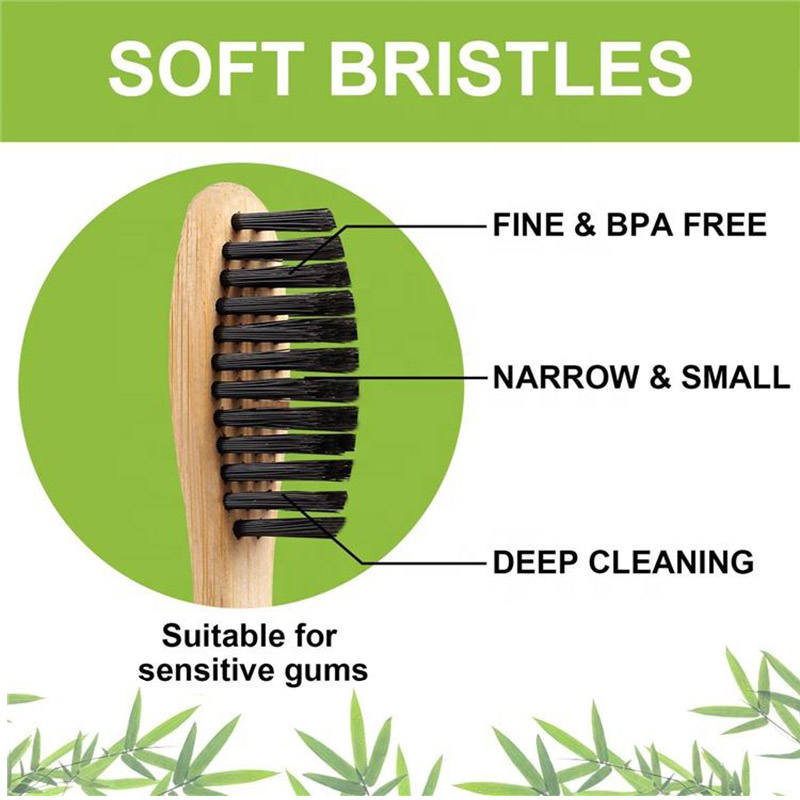 Échantillon gratuit, vente en gros, brosse à dents en bois doux noir biodégradable écologique, charbon de bois, poils souples, brosse à dents en bambou