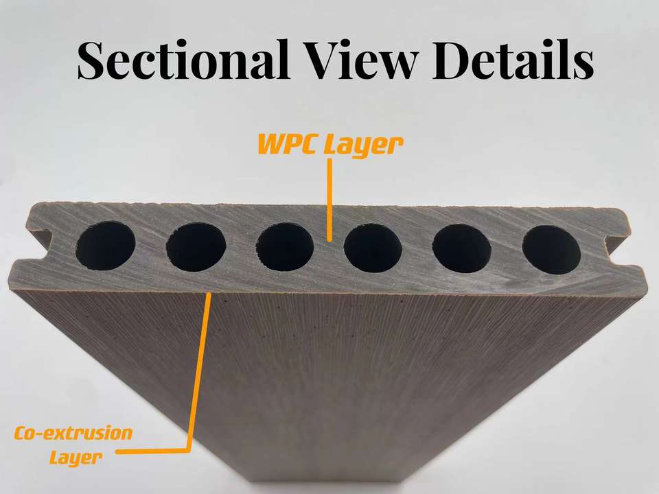 Échantillon gratuit couleur personnalisable plancher de bois extérieur en plastique imperméable incolore inodore double co-extrudé terrasse