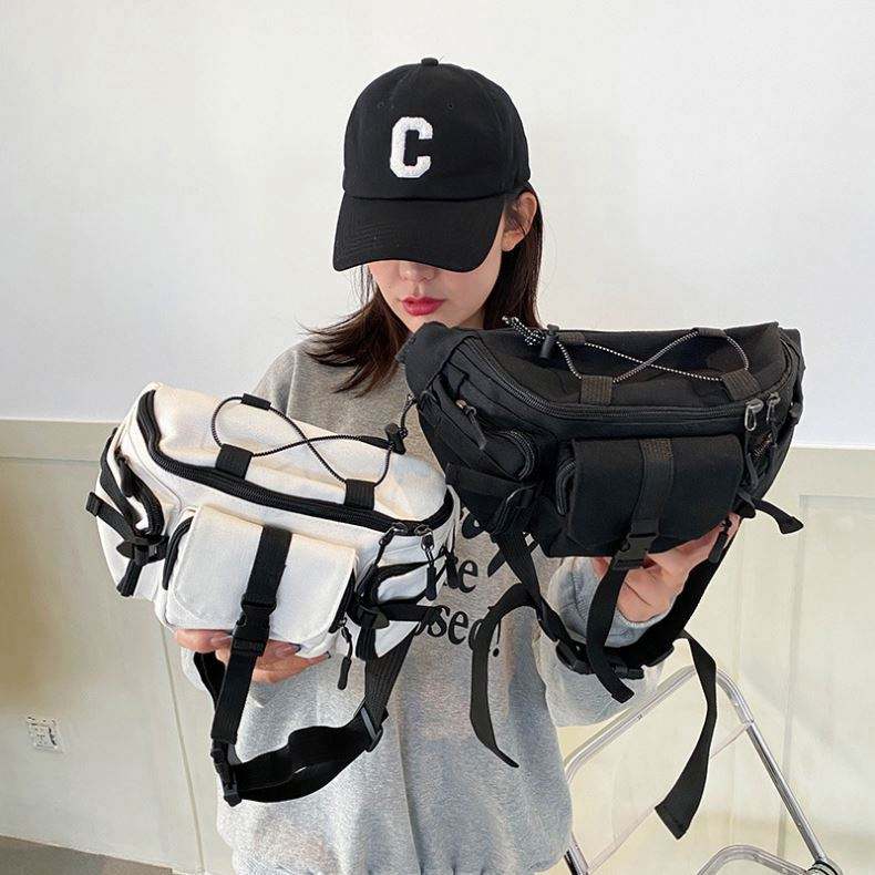 Échantillon gratuit Sac de poitrine en toile personnalisé noir pour homme Imperméable et tendance Multifonctionnel Sangle Sangle Sangle