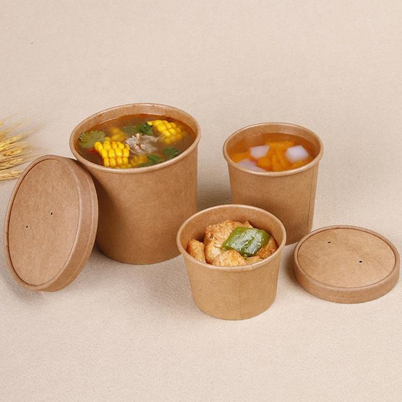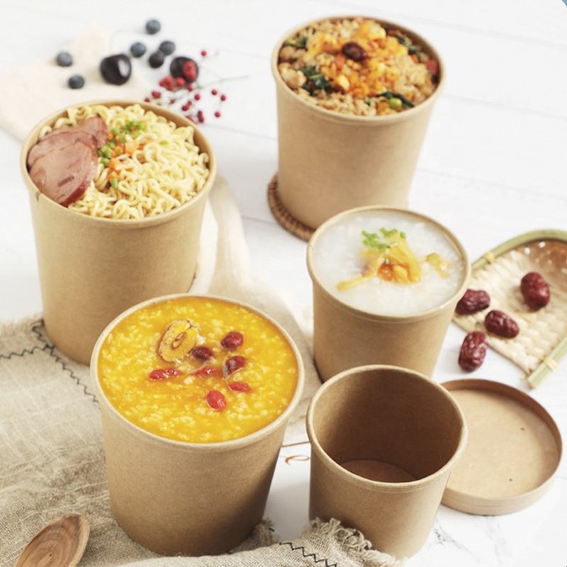 Échantillon gratuit Papier kraft de camping écologique jetable 16OZ Bol rond Récipient pour aliments à emporter
