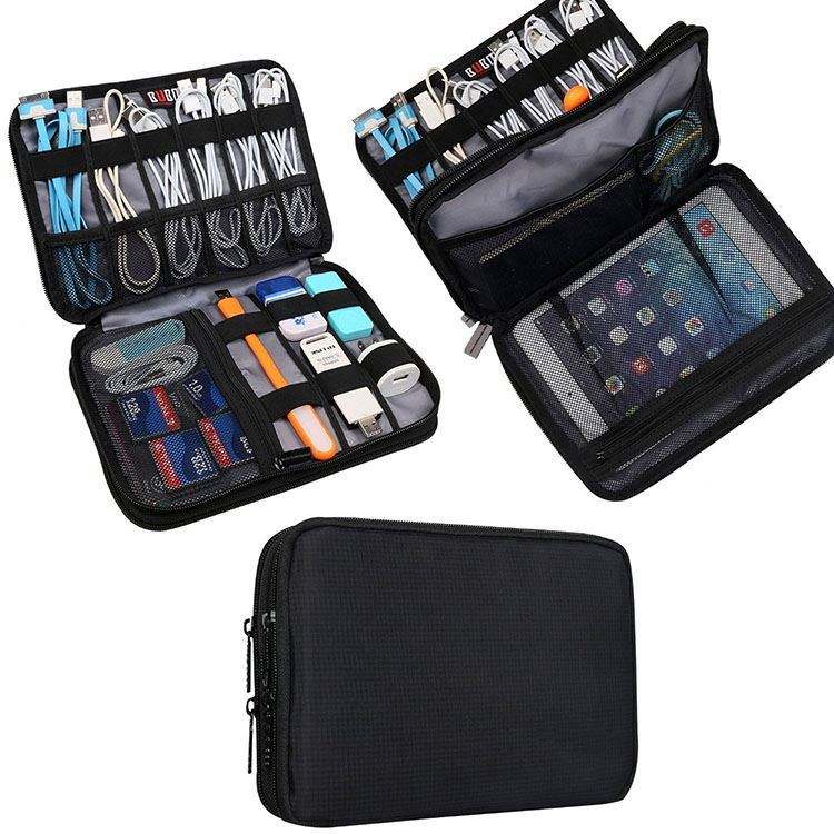 Échantillon gratuit Organisateur d'accessoires électroniques à double couche Sac de voyage pour gadgets pour câbles Clé USB Prise et plus
