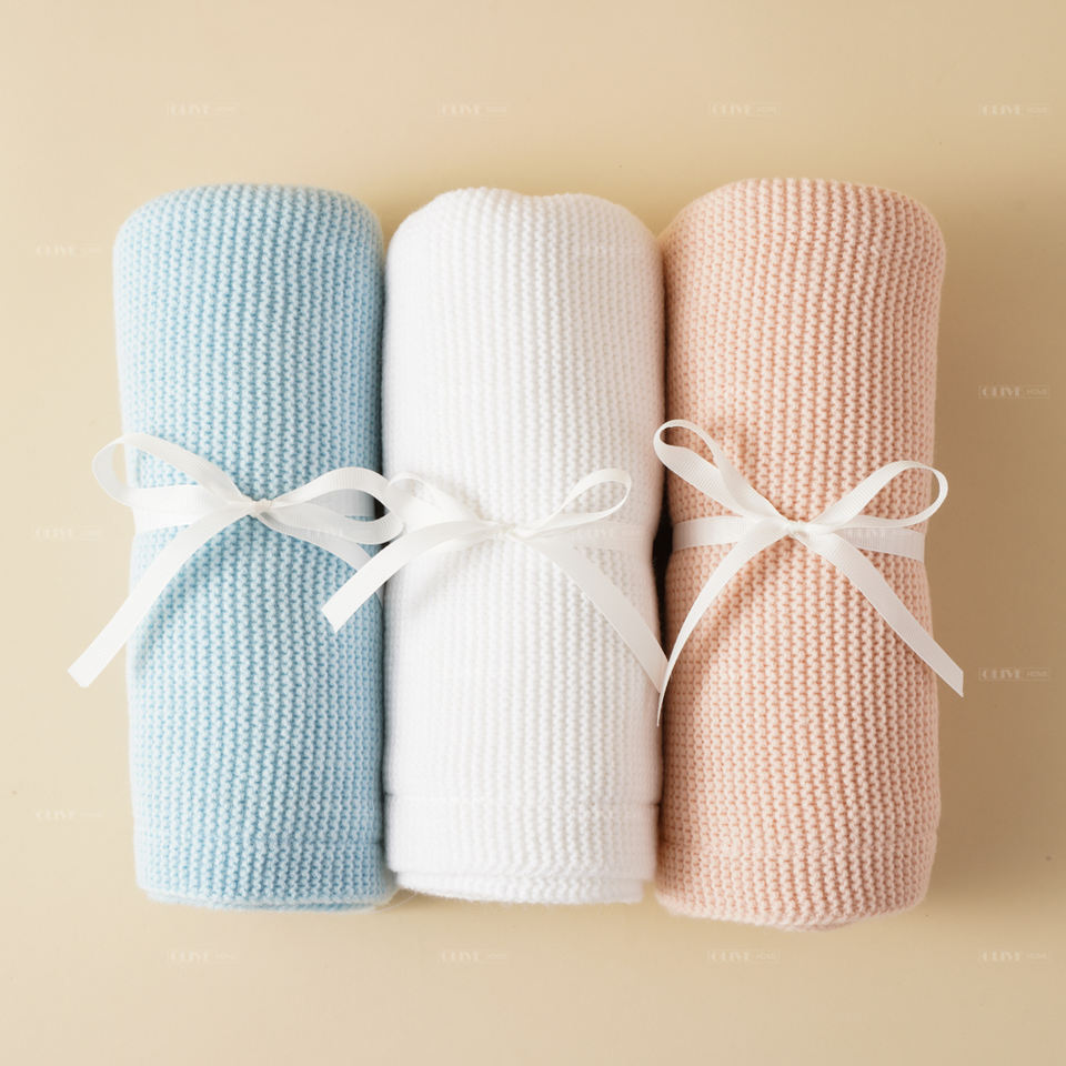 Échantillon gratuit Double couche rose tricoté polaire inversé bébé couverture polaire gaufrée coton tricoté biologique bébé emmaillotage Minky couverture