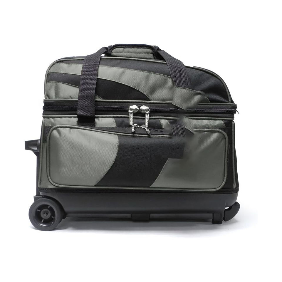 Échantillon gratuit Sac de bowling à double rouleau et 2 balles avec grand compartiment séparé pour chaussures de bowling avec roues et poignée rétractable
