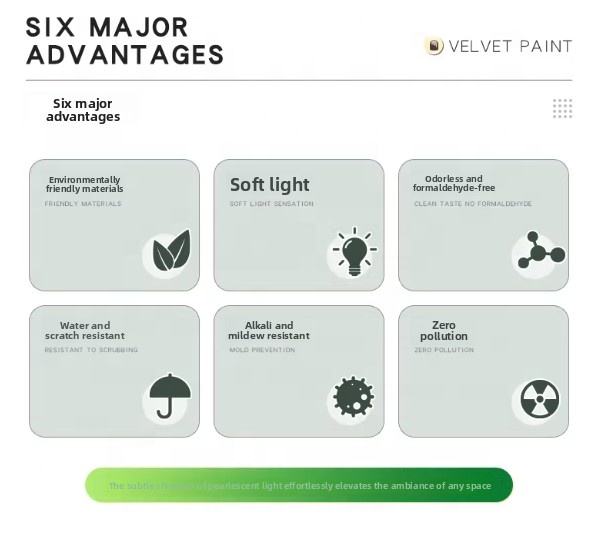 Caractéristiques:Peinture murale intérieure lavable, à faible teneur en COV, durable et résistante à la moisissure