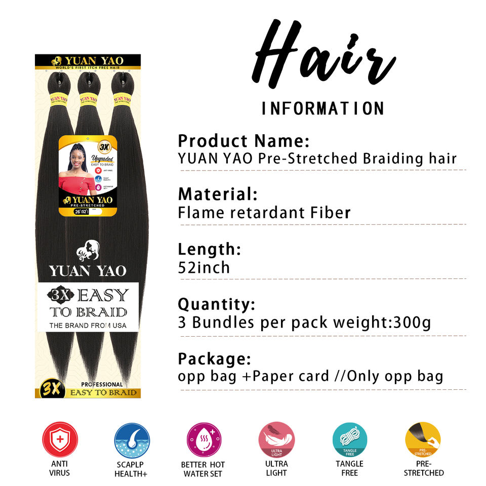 Nom du produit:YUAN YAO : Cheveux pré-étirés pour tresses
