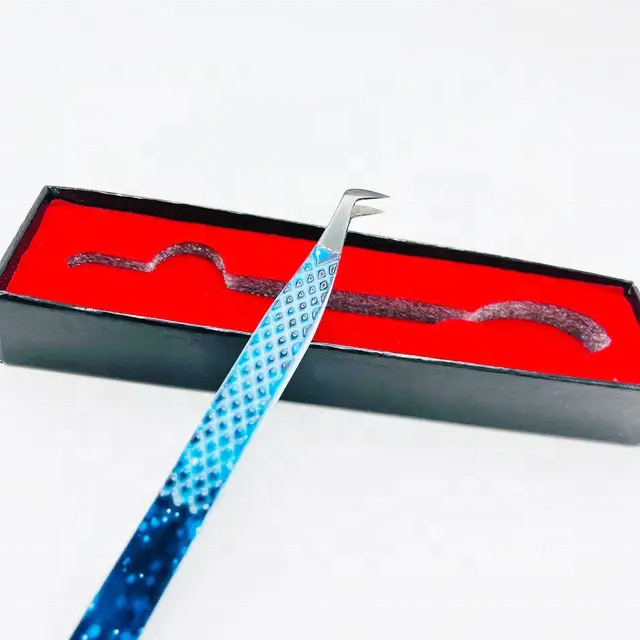 Échantillon gratuit pince à épiler d'extension de cils en acier inoxydable solide personnalisée avec pointe en fibre de diamant Design de botte de volume russe