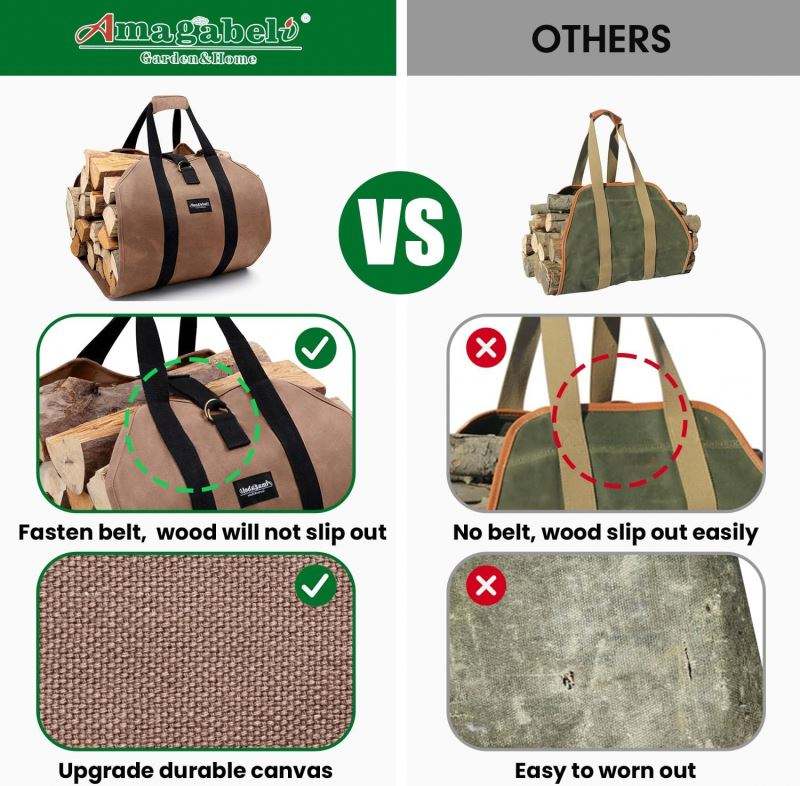 Sac de transport pour bois de chauffage de qualité supérieure, fabriqué en usine, avec poignées et sangle de sécurité, échantillon gratuit