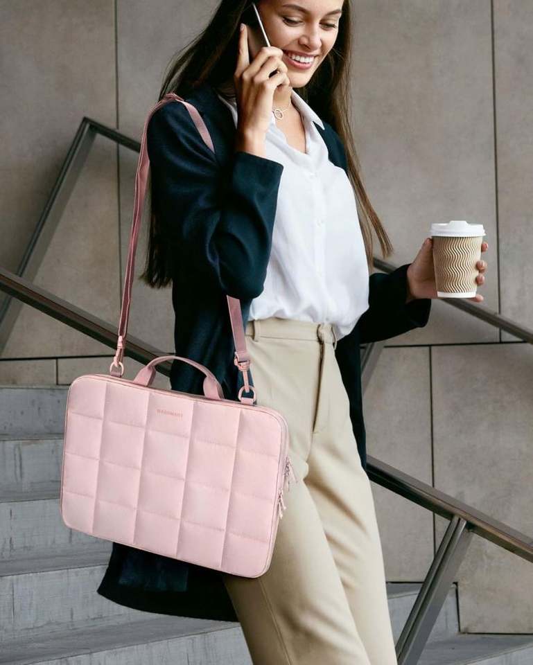 Échantillon gratuit Sac à ordinateur portable professionnel en polyester rose tendance Sac à ordinateur portable pour femmes et hommes