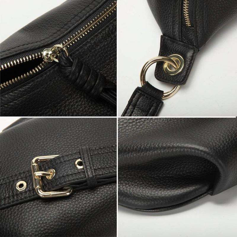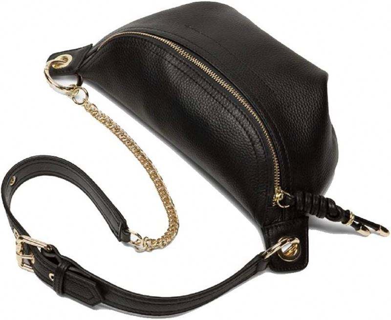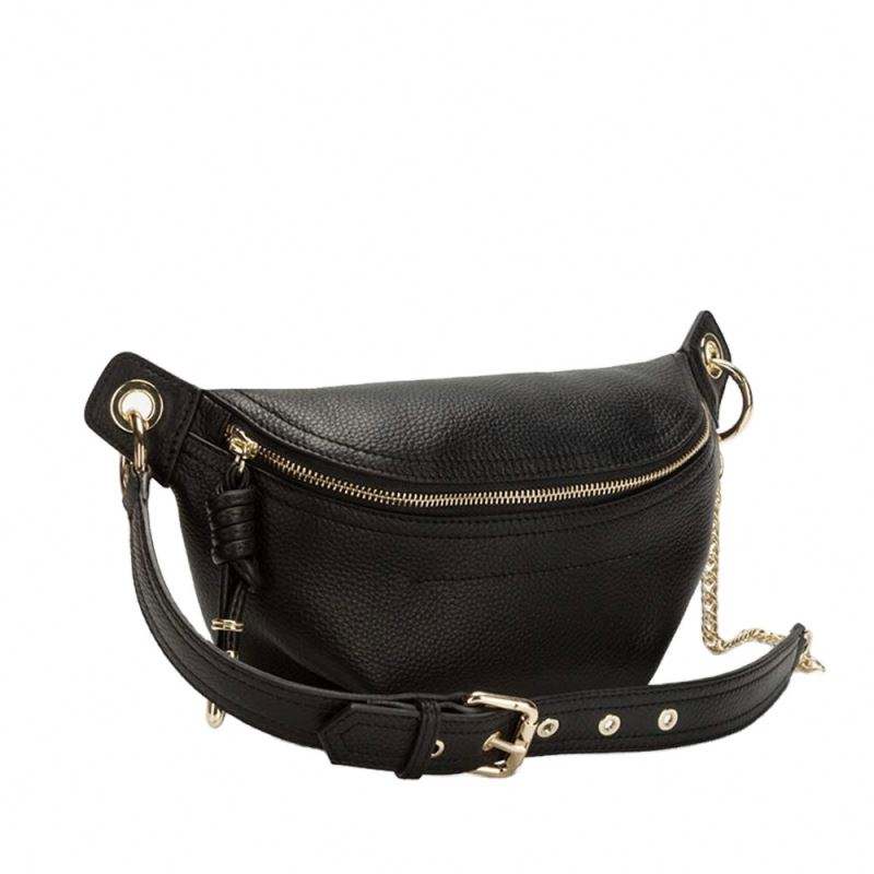 Échantillon gratuit Échantillon gratuit Sac banane en cuir véritable Sac de poitrine Porte-téléphone avec chaîne pour femmes Mini sac ceinture Noir