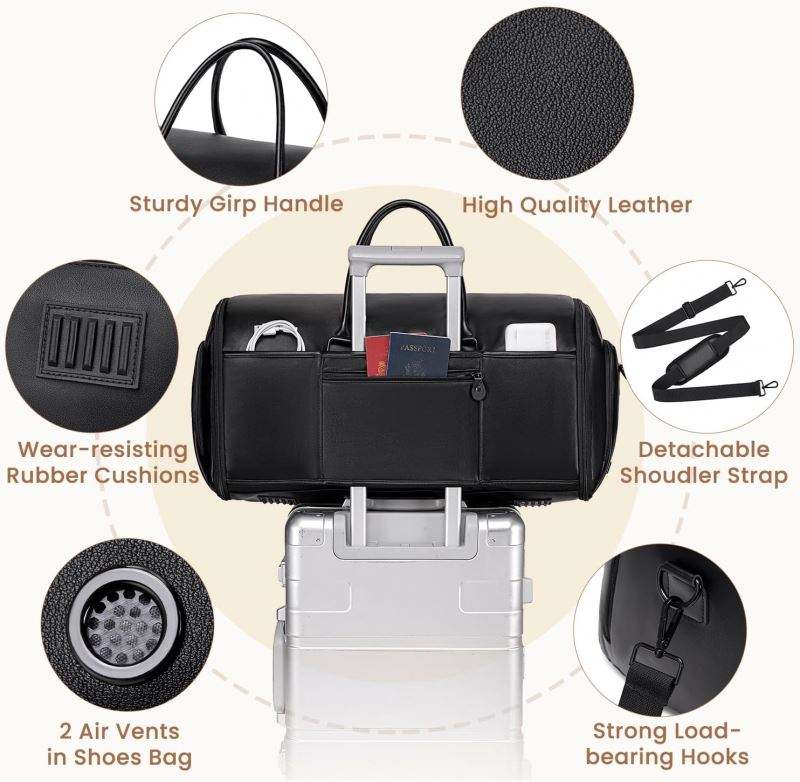 Échantillon gratuit de sacs à vêtements pour le voyage, sacs de voyage 2 en 1, sacs de costume, sacs à dos pliables avec compartiment à chaussures, trousse de toilette