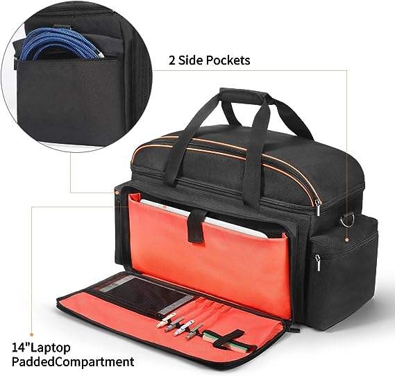 Échantillon gratuit Sac de transport pour équipement Câble Organisateur de fichiers Toile avec séparateurs amovibles Fond rembourré Grande capacité Fermeture à glissière