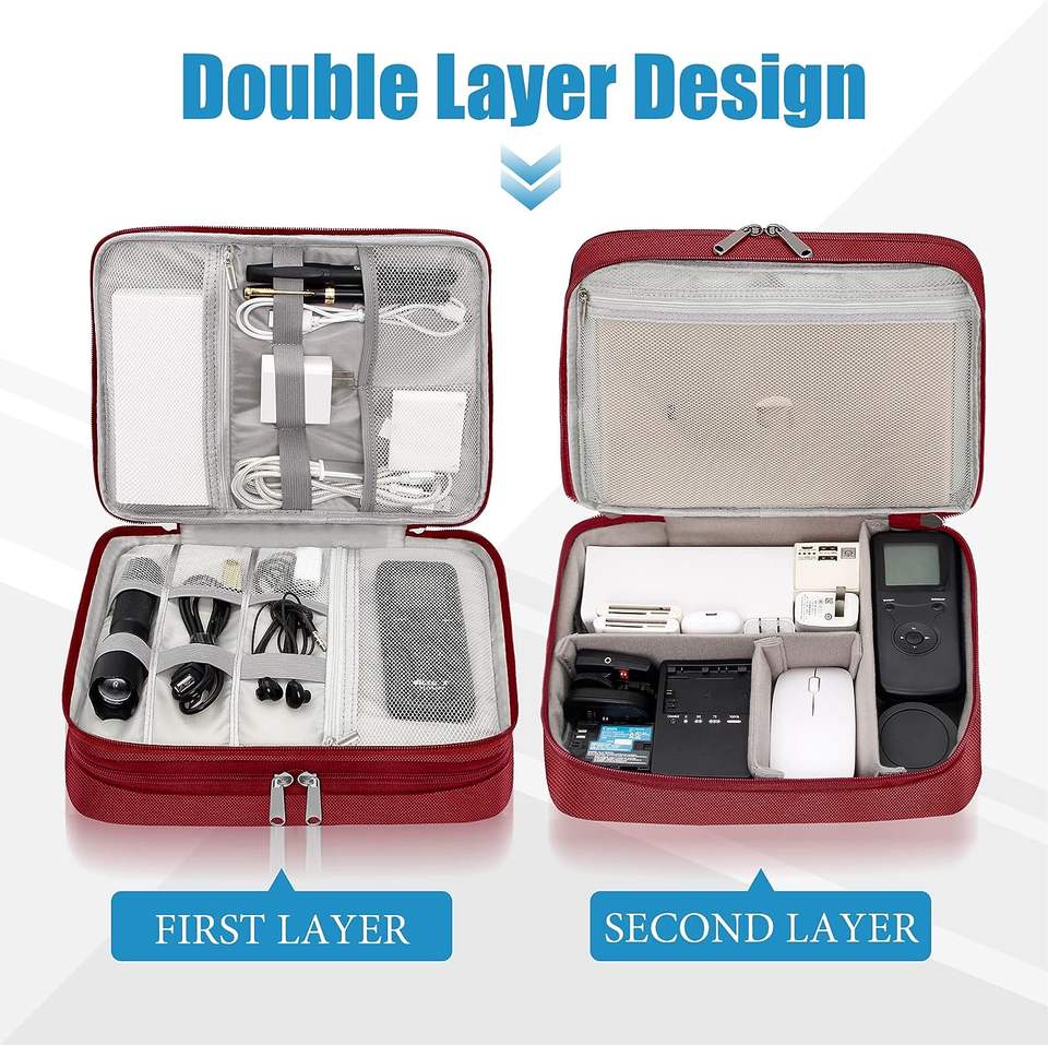 Échantillon gratuit Sac de transport pour équipement Câble Organisateur de fichiers Toile avec séparateurs amovibles Fond rembourré Grande capacité Fermeture à glissière
