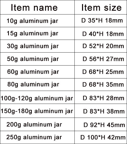 size:10g-250g aluminum cosmetic jar