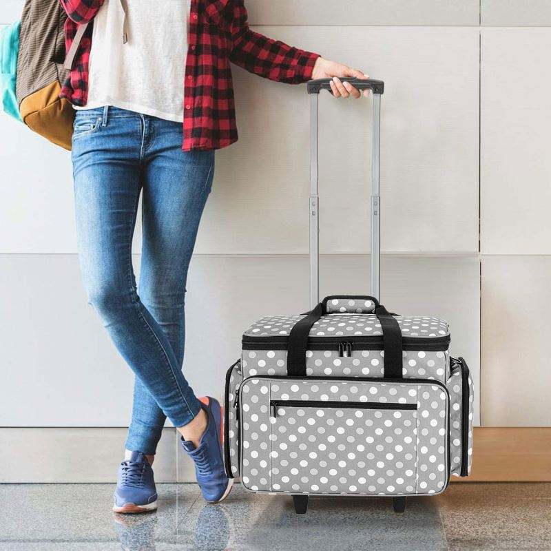 Échantillon gratuit de sac à roulettes rigide, 20 pouces de long x 11 pouces de large x 14 pouces de haut, pour la plupart des machines à coudre à bras libre, sac à roulettes pour machine à coudre