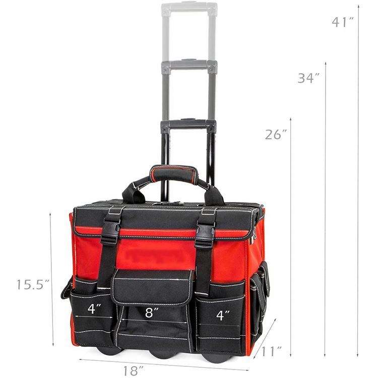 Free Sample High Quality 600-Denier Red Contractor's Rolling Tool Tote Bag with Wheels Water Resistant for Special Purpose Cases