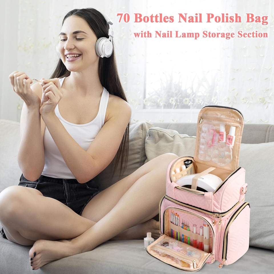 Échantillon Gratuit Sac à Dos de Voyage Grande Capacité Organisateur de Vernis à Ongles et Trousse de Maquillage Portable avec Logo Personnalisé Peut Contenir 70 Flacons