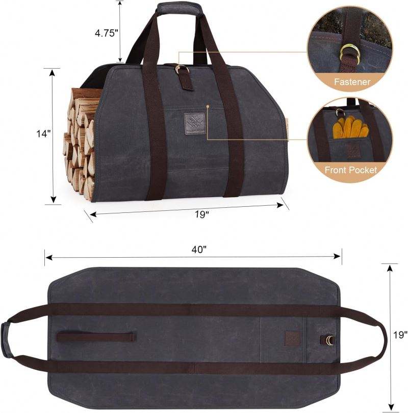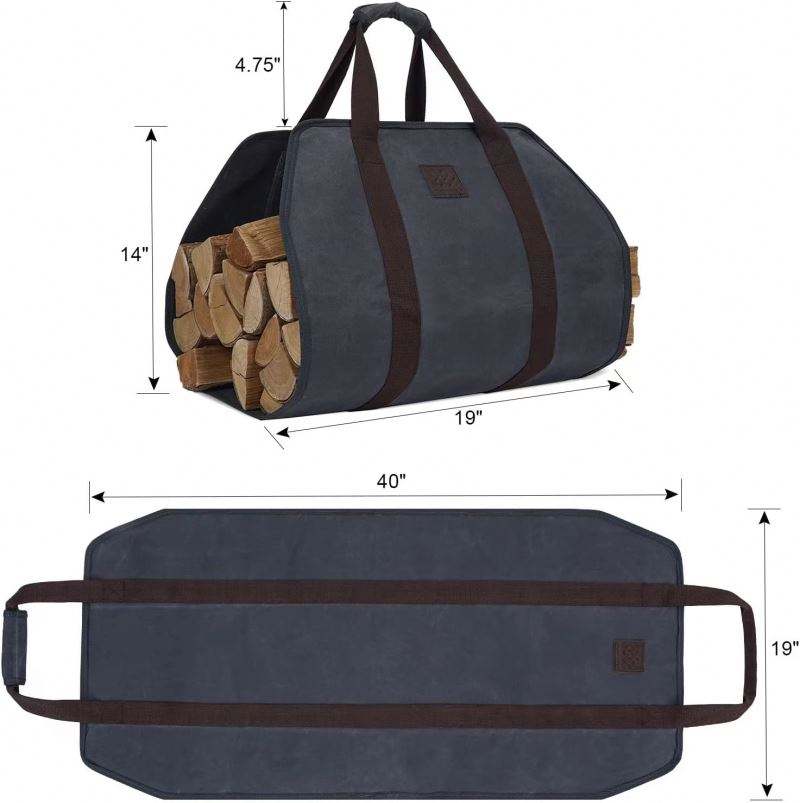 Sac de transport pour bûches de bois, grand format, échantillon gratuit, pour accessoires de poêle à bois, en toile cirée résistante, sac de transport pour bûches