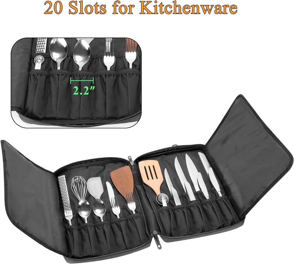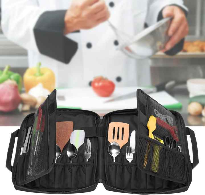 Échantillon Gratuit : Étui de Luxe pour Couverts avec Fermeture Éclair, 7 Compartiments, Professionnel, Réutilisable, Lavable, Protecteur, pour Restaurant et Cuisine