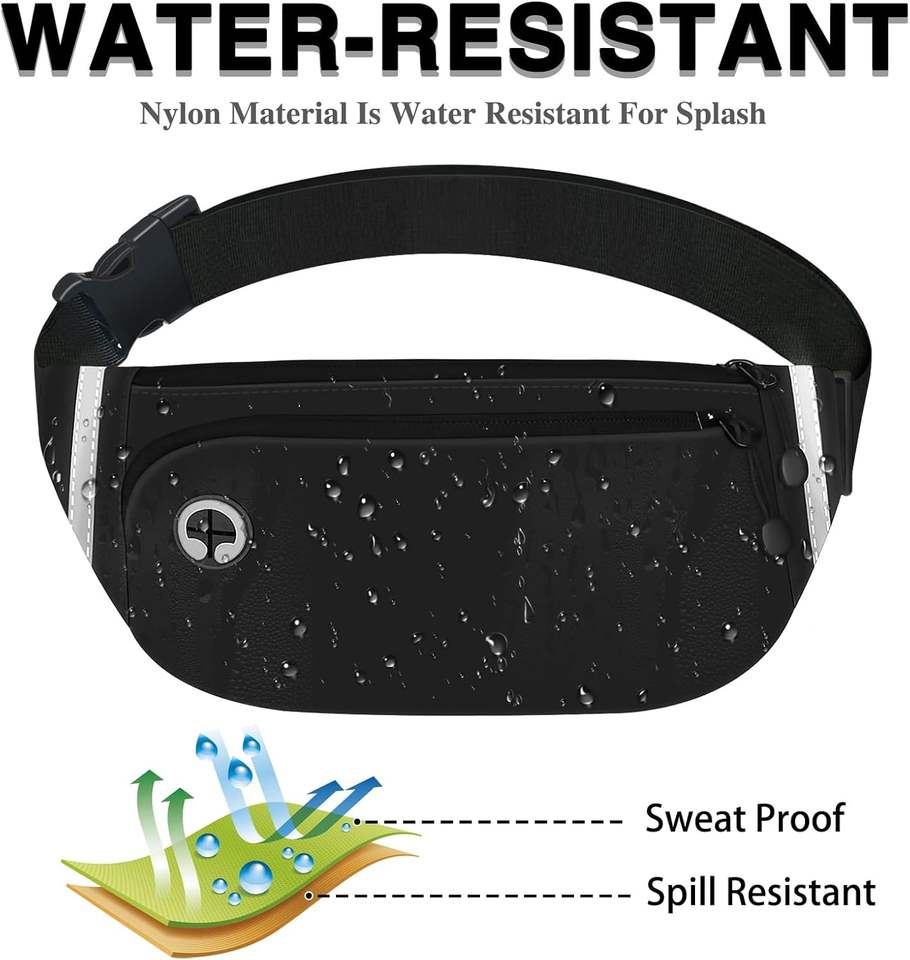 Échantillon gratuit Sac banane imperméable pour homme en nylon avec pochette pour téléphone portable et portefeuille à fermeture éclair en tissu Oxford pour voyage et outils