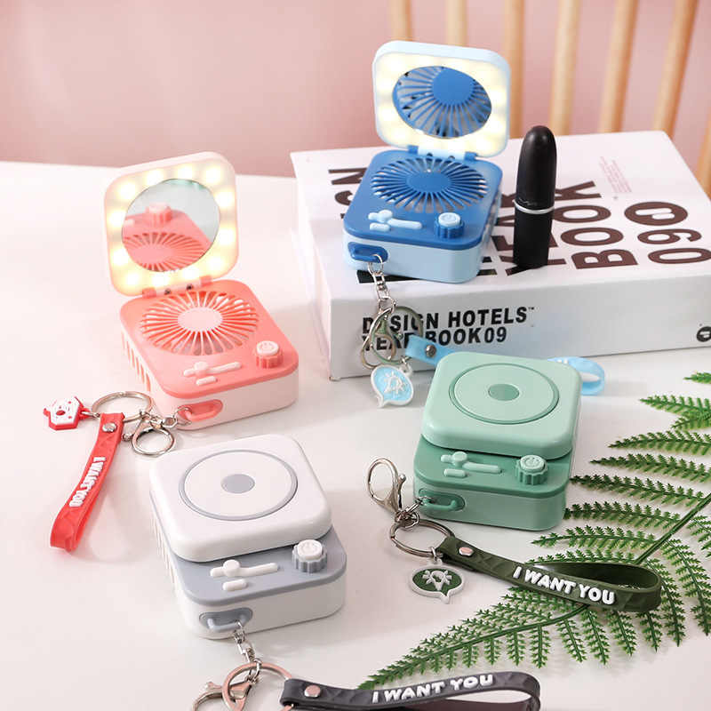 Mini ventilateur USB multifonctionnel, Radio rétro, avec miroir de maquillage et lumière de remplissage, sans échantillon