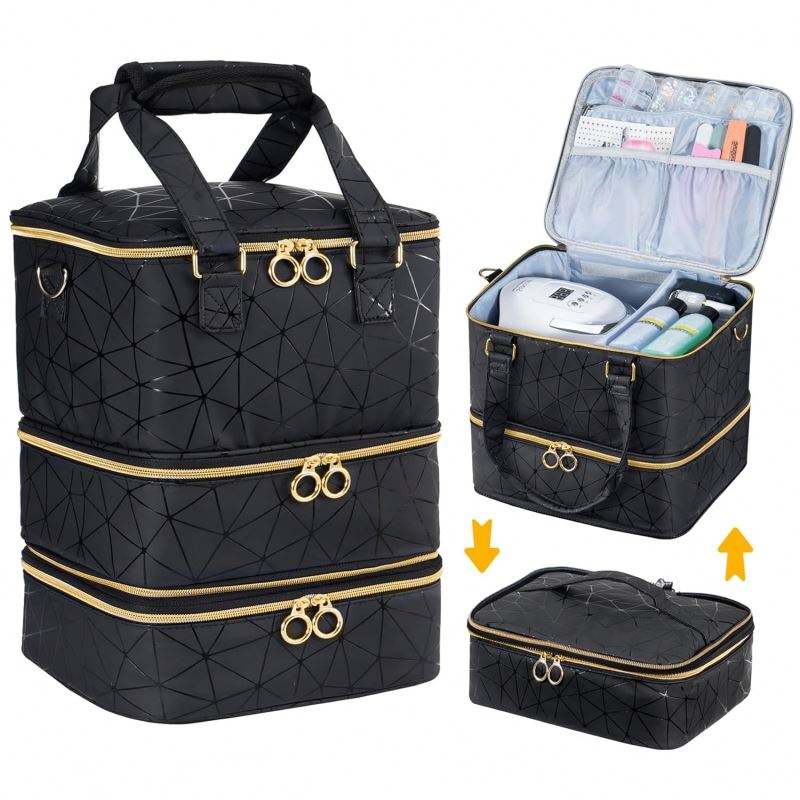 Boîte de rangement pour vernis à ongles, échantillon gratuit, 80 flacons, grande capacité avec 2 sacs amovibles, peut contenir des outils de nail art pour femmes