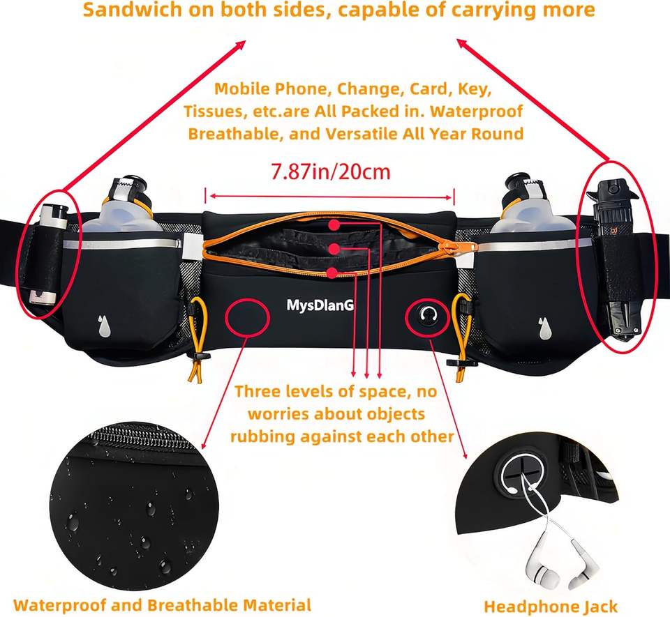 Échantillon gratuit Ceinture de sport imperméable en nylon Sac de ceinture Sac banane Fermeture à glissière Porte-bouteille d'eau Candy pour la course en plein air
