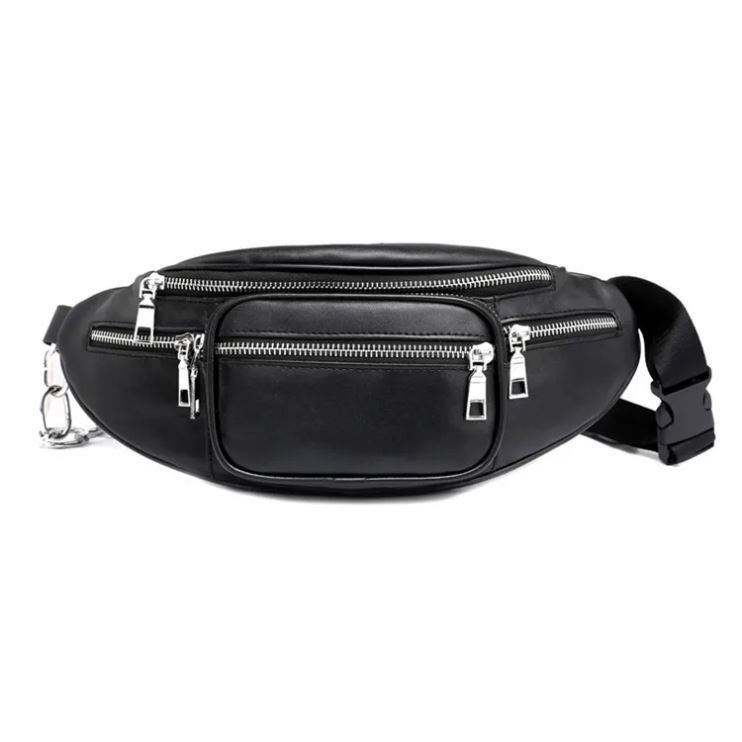 Échantillon gratuit, sac banane vintage en cuir noir pour homme, grand modèle 2024, personnalisable OEM