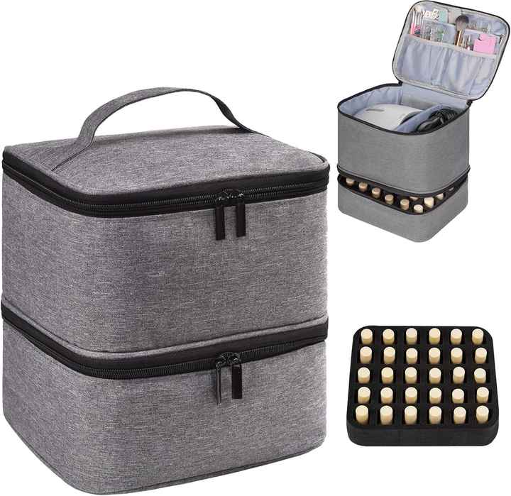 Échantillon gratuit : Trousse de rangement double couche pour vernis à ongles, avec séparateurs amovibles, pour outils de manucure et cosmétiques de voyage