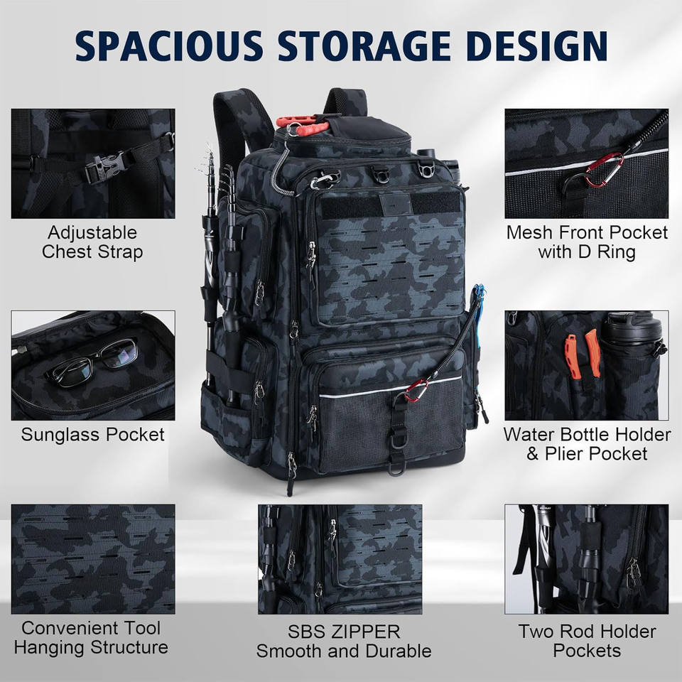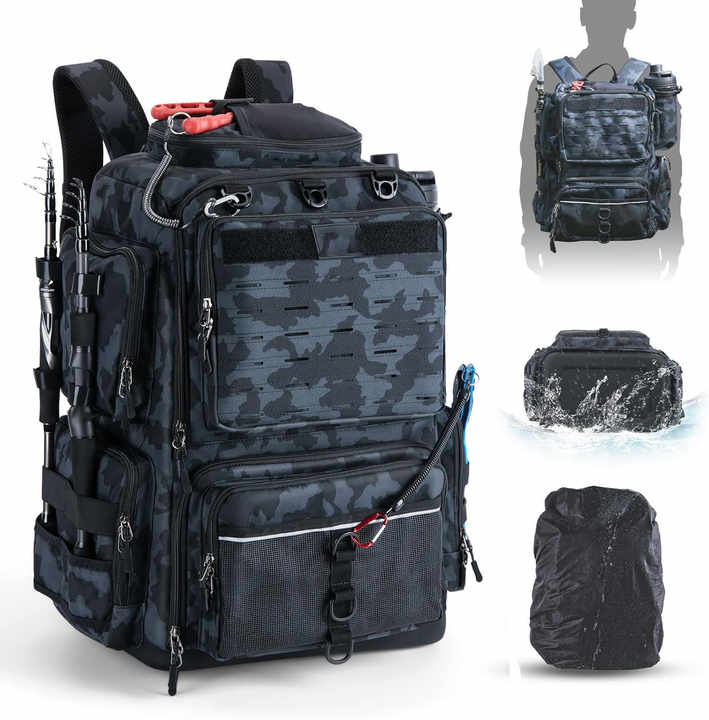 Sac de pêche extérieur gratuit, sac à pêche, sac à dos de pêche avec porte-cannes et 4 boîtes à pêche