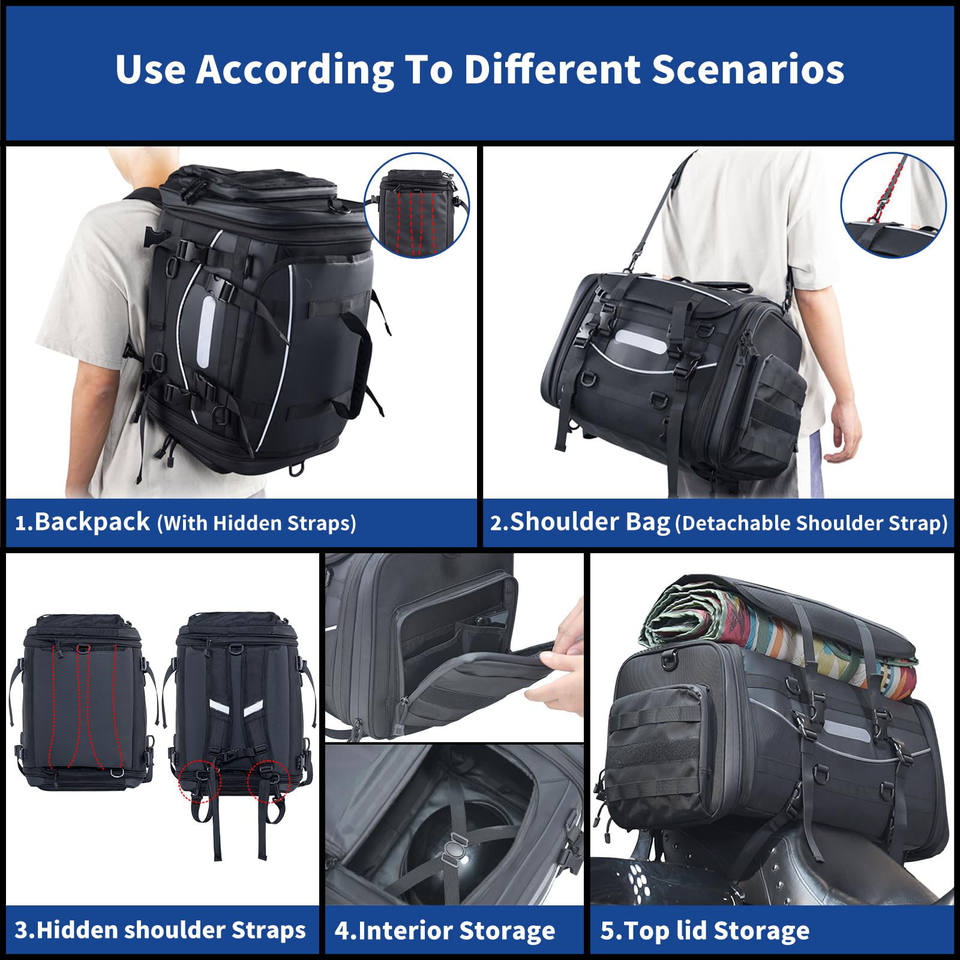 Échantillon gratuit de produits de plein air, sacoches latérales de selle en PVC imperméable à la mode pour moto, voyage, montagne, poche zippée pour le camping