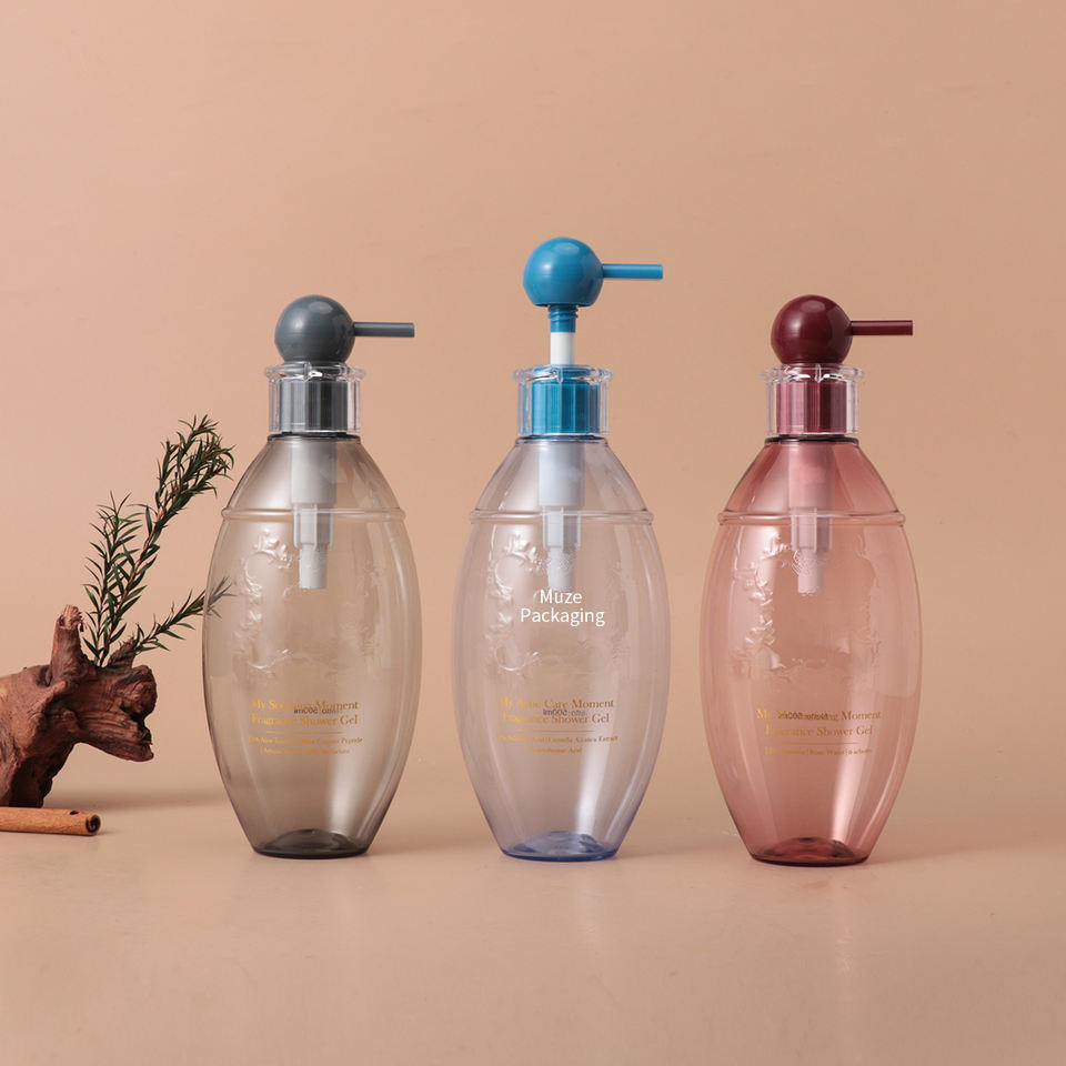 Échantillon gratuit de bouteille de gel douche en plastique PET de 500 ml, bouteille de savon pour les mains, bouteille de shampoing, emballage
