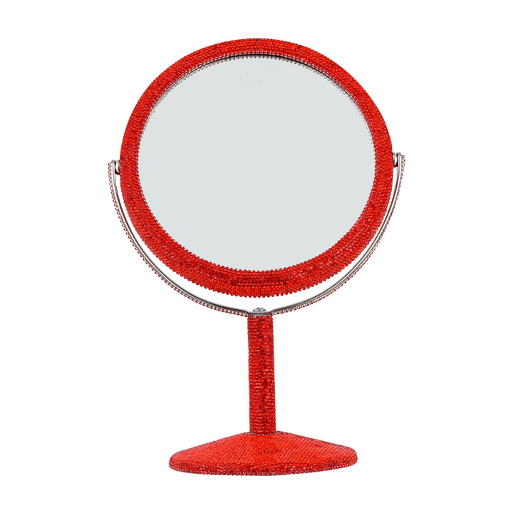 Échantillon gratuit Ensemble coiffeuse de maquillage rose avec strass avec support en métal et miroir en verre pour cosmétiques et soins de beauté
