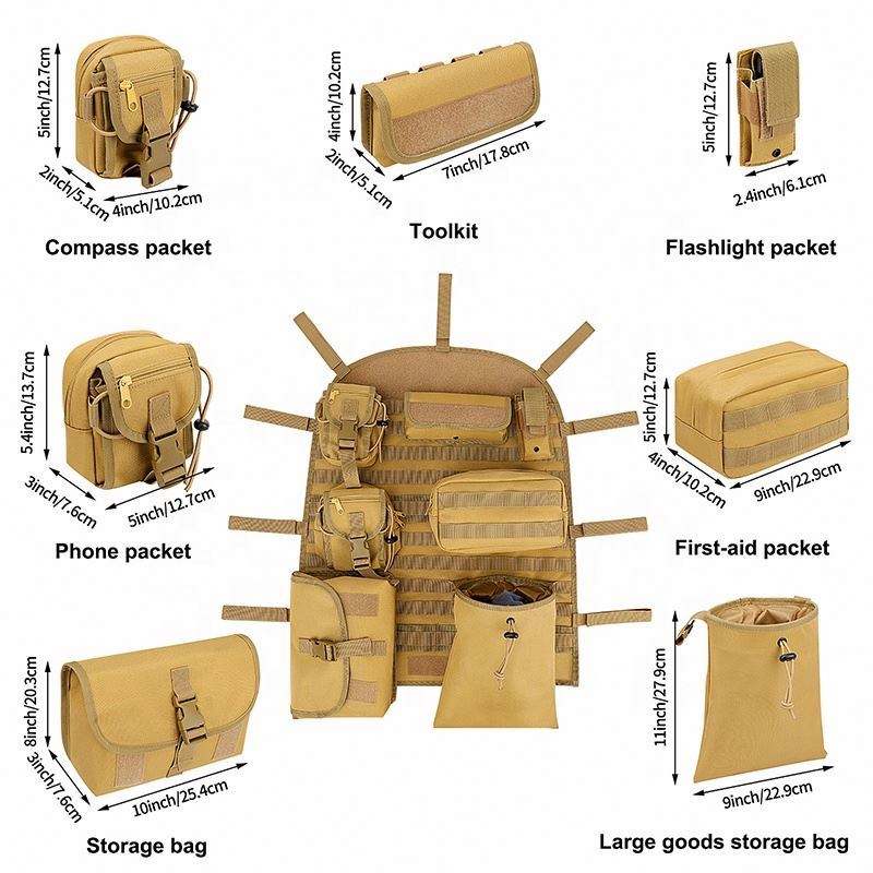 Échantillon Gratuit - Housse de Siège Auto Portable, Durable, Multi-Poches, Style Molle, Imperméable, Anti-Salissures, Anti-Rayures, Protection Avant et Arrière