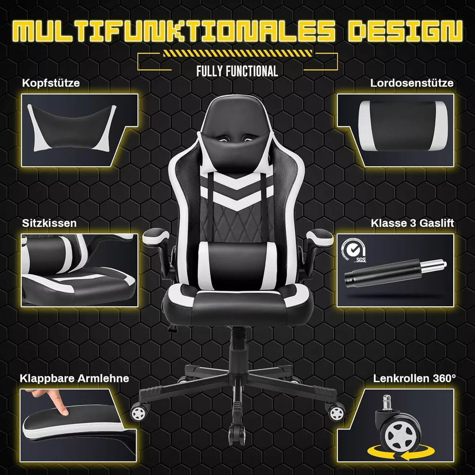 Autre, Convertible, Rotation, poids ajustable, Inclinable, Massage, Pliable, Extensible, Multifonction, Pivotant à 360 degrés, Accoudoirs réglables, Repose-pieds, Dos élevé, Soutien lombaire, RVB a mené des lumièresDispositif