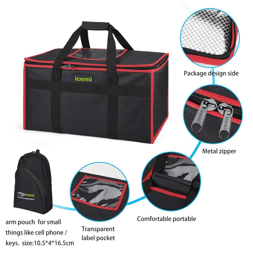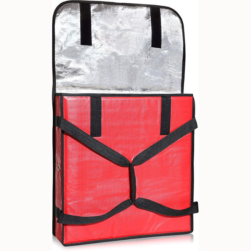 Échantillon gratuit de sacs d'expédition isolés à rayures rouges pour 3 pizzas 20x20x6 Sac alimentaire Livraison Usage personnel ou professionnel