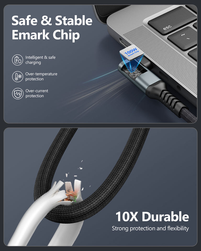 Échantillon Gratuit SUNGUY Câble de Charge Rapide USB C 100W 5A à 90 Degrés, Câble de Données USB pour Téléphone Portable et Ordinateur Portable, Câble d'Alimentation Personnalisé