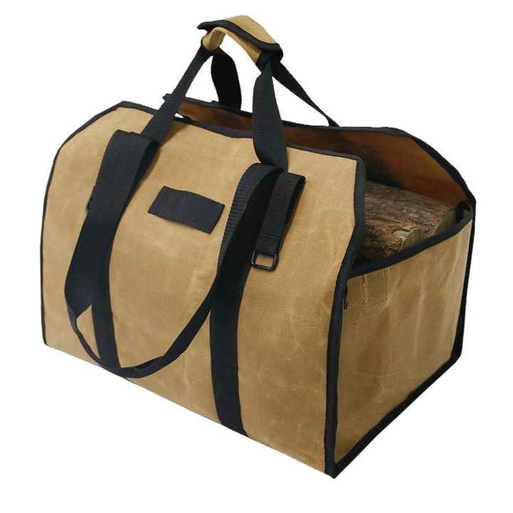 Sac de transport en bois robuste avec sangles et poignées pour le camping et le jardinage, avec un foyer en toile – Échantillon gratuit
