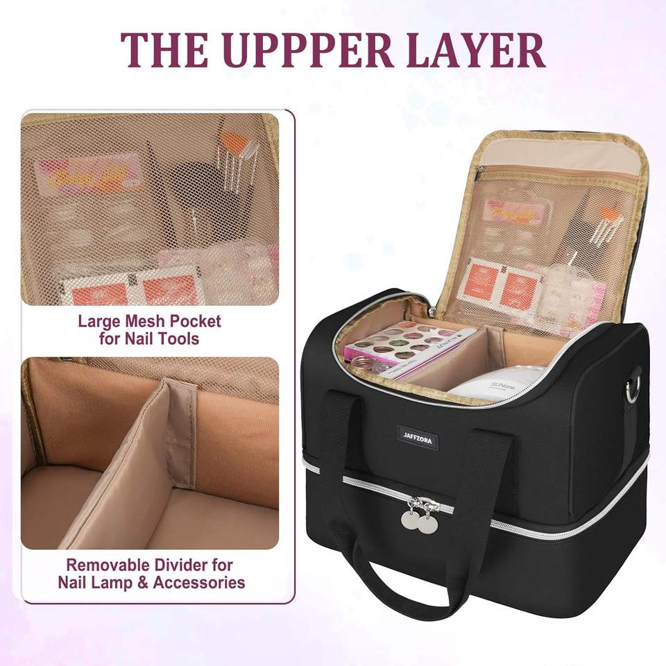 Étui de rangement de maquillage de voyage gratuit, sac de rangement portable pour artiste avec séparateurs réglables, organisateur de vernis à ongles